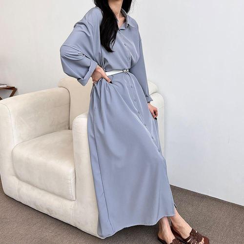 [셀럽하우스]카라 WLAU8610 기본 무지 베이직 심플 셔츠 긴팔 봄 롱원피스