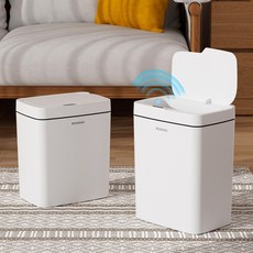 1+1 세트 18L+15L KUAHAI 자동 센서 쓰레기통 화장실 기저귀 냄새차단 휴지통, 흰색