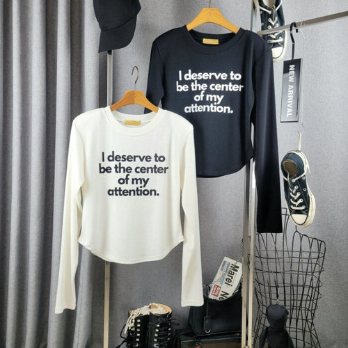 씨샵인더룸 / 블랙라벨 어텐션 레터링 어깨패드 세미크롭 긴팔 티셔츠 2color