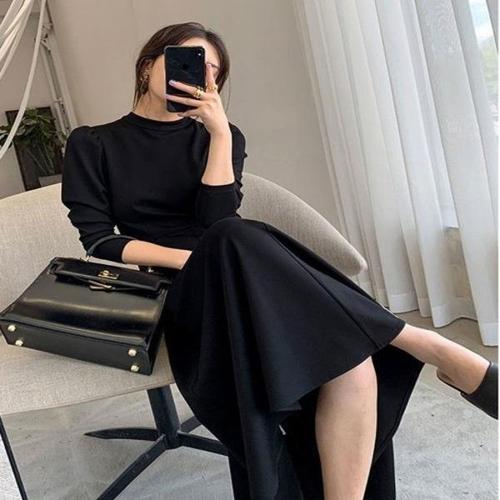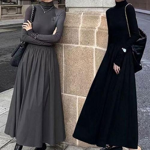 [엄지척]여성 하이넥 하이웨스트 긴팔 롱원피스 A라인 원피스_19911205_667501