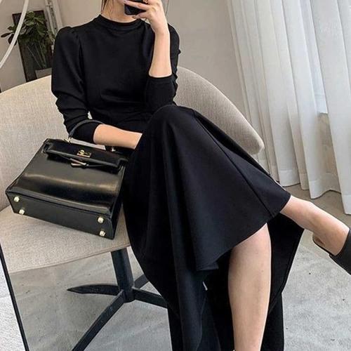 [엄지척]여자 반목 긴팔 블랙 롱원피스 A라인 하객룩 상견례룩_19912601_667501