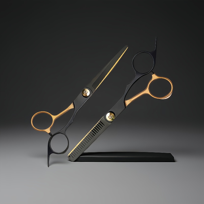TEMU 2개 세트 헤어 가위, 전문가용 탈모 가위 포함, 홈 트리밍을 위한 특별한 평면 마법 가위, 독특한 블랙-골드 디자인과 다기능 기능