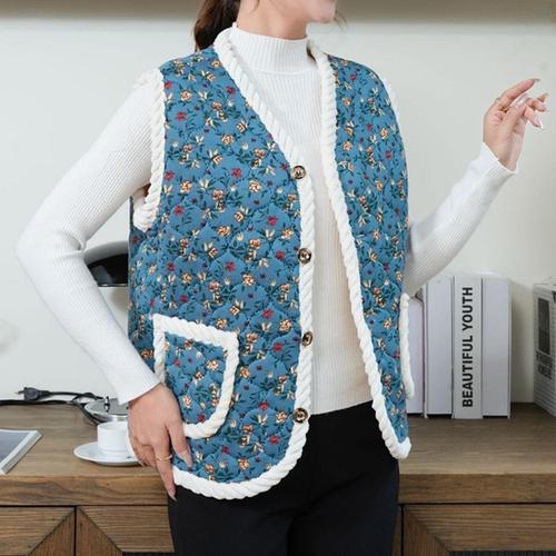 [셀럽하우스]여성 QATH1988 누빔 꽃 무늬 김장 할머니 옷 겨울 조끼 블루