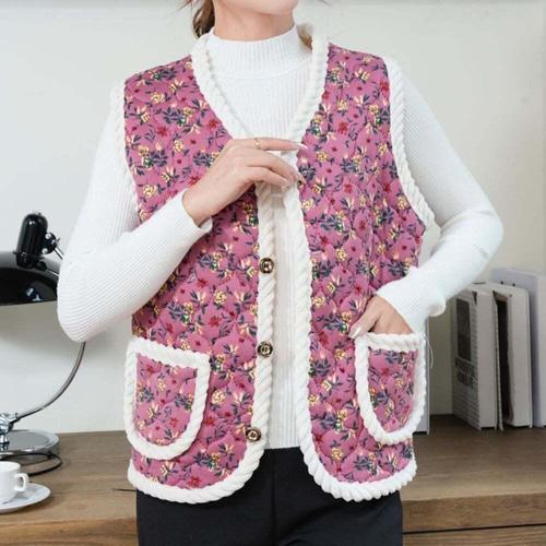 [셀럽하우스]중년여성 TAGY5445 4컬러 꽃무늬 김장 누빔조끼 융털 방한조끼