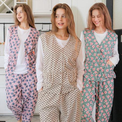 필굿 할머니조끼 2P세트 꽃무늬 꽃가라 기모 누빔 양털 김장조끼 레트로패션 촌캉스룩 엄마 아줌마 복고 몸빼
