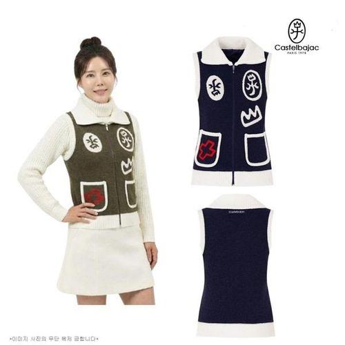 [까스텔바작]여자 겨울 빅카라 부클원사 겨울 골프 니트 조끼 BGDW-SV702.
