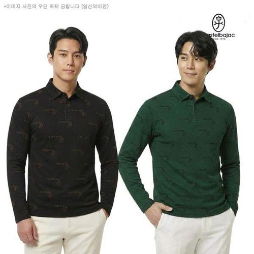 [기타]까스텔바작 남성 골프 기모원단 겨울 카라 패턴 프린트 기본 티셔츠 BGEWTL-204