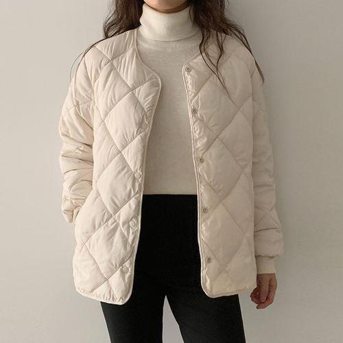 [디바옴므]항아리퀄팅 버튼 경량 라운드 패딩 자켓 점퍼 누빔 깔깔이 남여공용