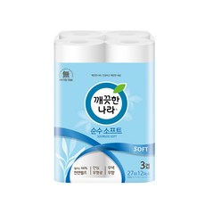 깨끗한나라 3겹 화장지 순수소프트 27m 12롤 6P 휴지