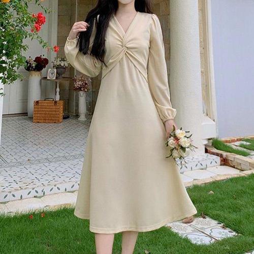 [반애] 하객 롱 휴양지 바캉스 꼬임 A라인 긴소매 원피스