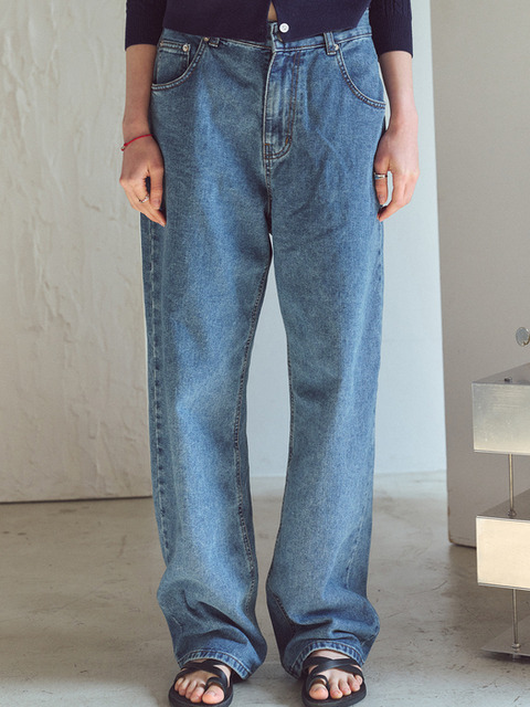 [꼼파뇨] 우먼 세미 와이드 데님 팬츠 인디고블루