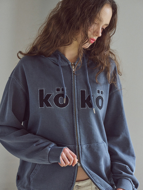 [꼼파뇨] [2-WAY] KOKO 아플리케 피그먼트 후드 집업 다크블루