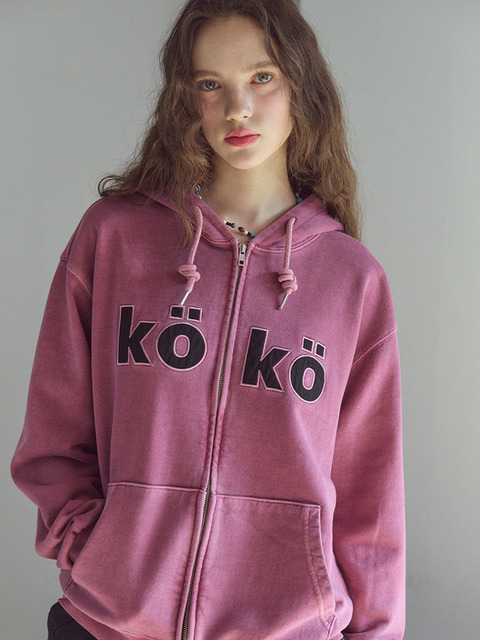 [꼼파뇨] [2-WAY] KOKO 아플리케 피그먼트 후드 집업 더스티핑크