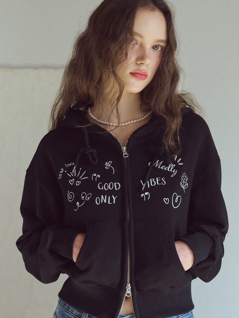 [꼼파뇨] [2-WAY] 루나 러브 크롭 후드집업 블랙