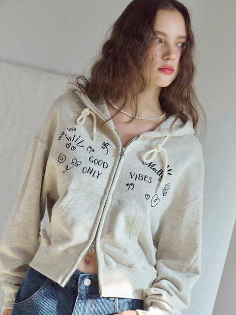 [꼼파뇨] [2-WAY] 루나 러브 크롭 후드집업 오트밀