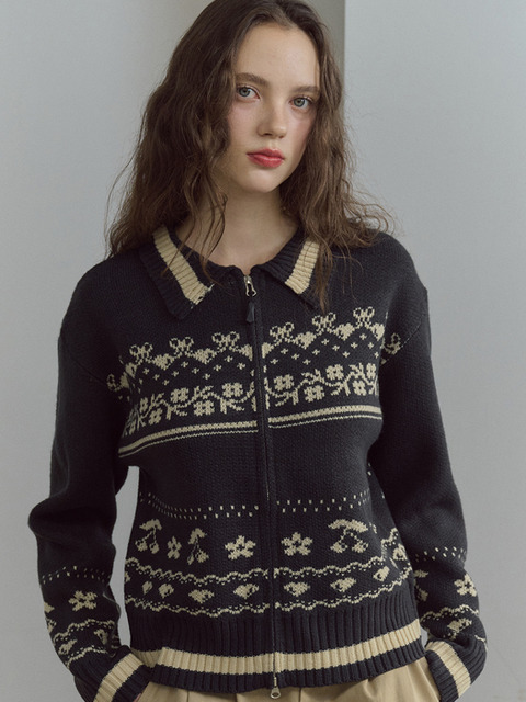 [꼼파뇨] [2-WAY] 체리 크롭 집업 가디건 챠콜