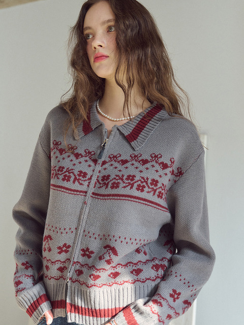[꼼파뇨] [2-WAY] 체리 크롭 집업 가디건 그레이