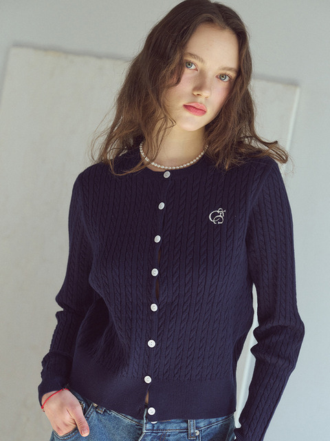 [꼼파뇨] 꽈배기 크롭 니트 가디건 네이비