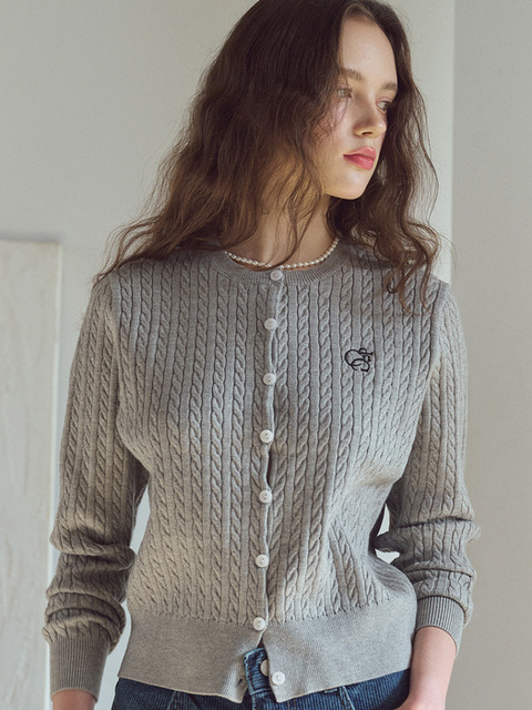 [꼼파뇨] 꽈배기 크롭 니트 가디건 그레이