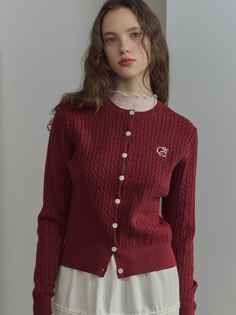 [꼼파뇨] 꽈배기 크롭 니트 가디건 버건디
