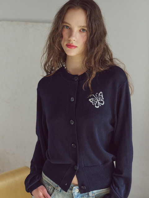 [꼼파뇨] 나비 크롭 니트 가디건 네이비