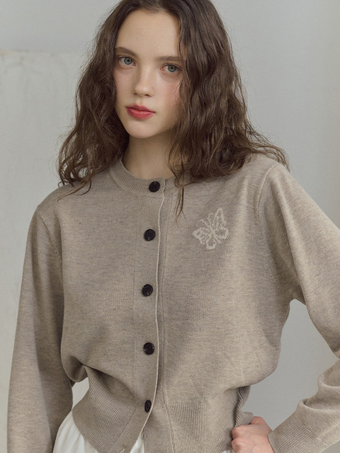 [꼼파뇨] 나비 크롭 니트 가디건 베이지