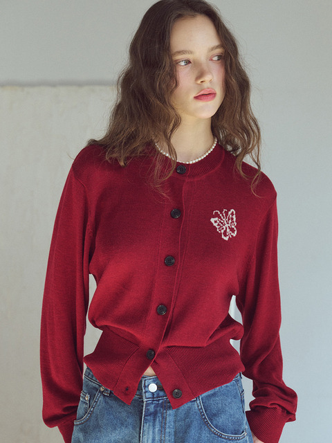 [꼼파뇨] 나비 크롭 니트 가디건 딥레드