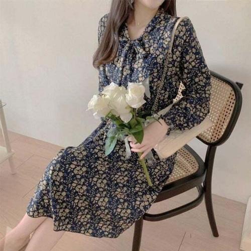 [셀럽하우스]여성 MLDX6892 꽃무늬 원피스 봄 가을 리본 프릴 밴딩 롱 치마