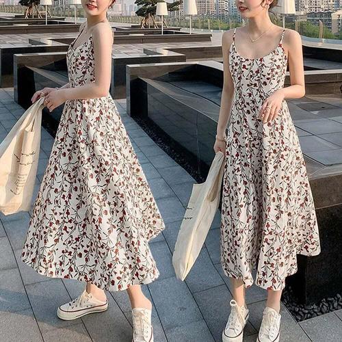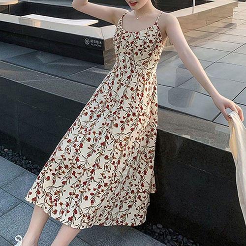[셀럽하우스]러블리 RKPL2844 쉬폰 플레어 끈나시 꽃무늬 원피스 쉬폰꽃무늬