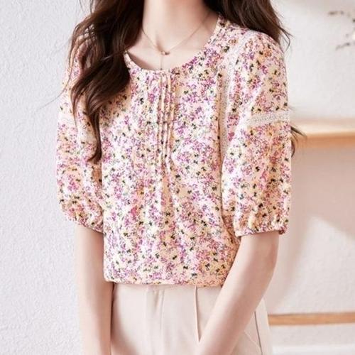 [엄지척]블라우스 핑크 반팔 여름블라우스 꽃무늬 반팔블라우_19644703_667501