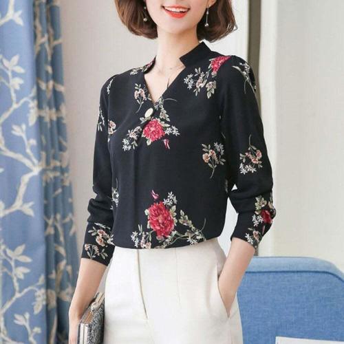[다잇템] 여성 롱슬리브 꽃무늬 블라우스 시폰 루즈핏