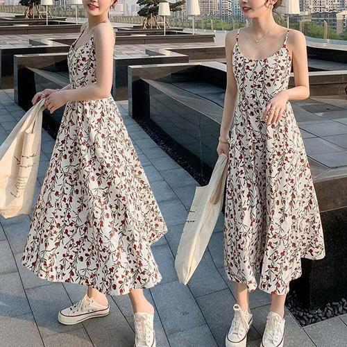 [셀럽하우스]롱 DHAT5577 나시 추천 원피스 여자 꽃무늬 브이넥 셔링