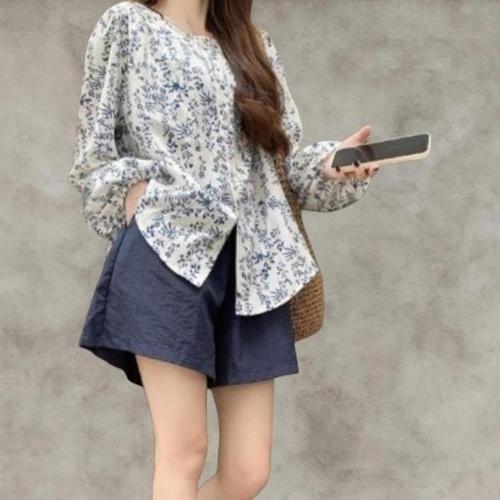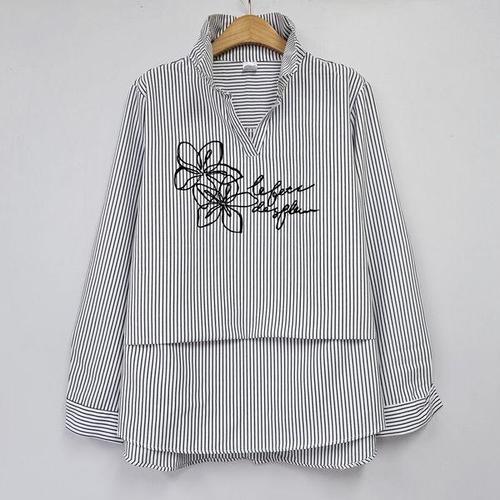[다잇템][다잇템] 여성 패턴 꽃무늬 빅사이즈 롱슬리브 사랑스러운 카라없는 셔츠_23026334_588872