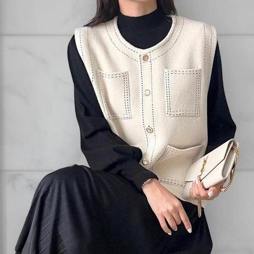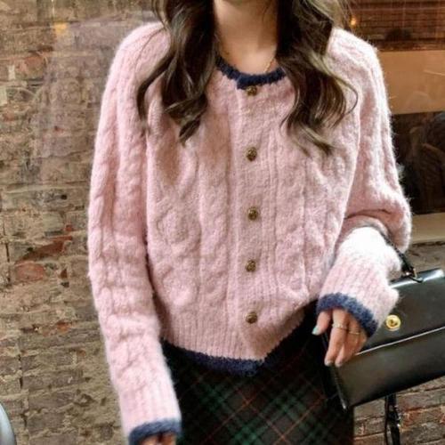 여성용 부드러운 꽈배기 베이직 라운드 니트 트베가디건