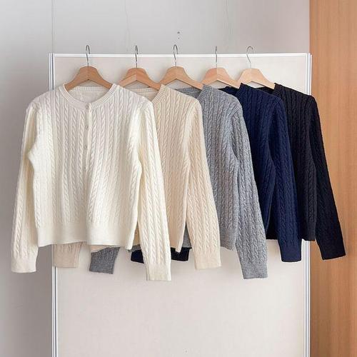 네모엔룩 케이블버튼 여성용 꽈배기 걸즈 베이직 크루넥 니트 가디건