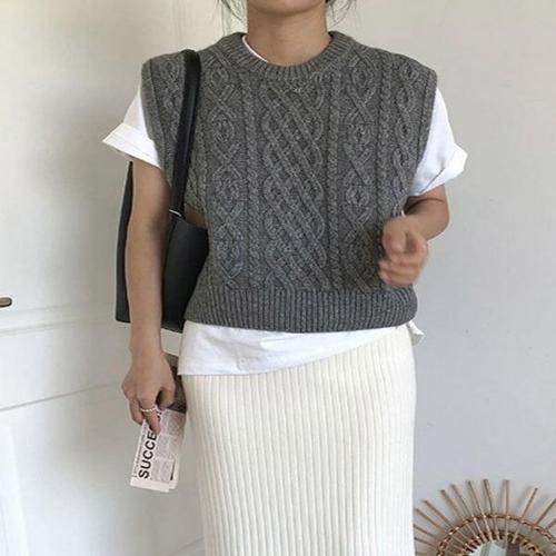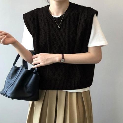 [리빌모아]여자 꽈배기 크롭 라운드 니트 조끼 DJW-VEA-SCAT1049