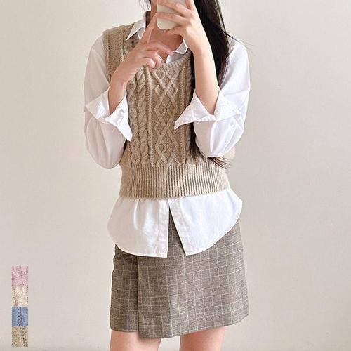 [셀러허브_여성트랜드패션]ONM 여성 꽈배기 스타일 니트 조끼 URK 귀여운조끼