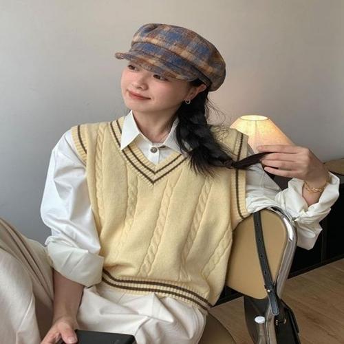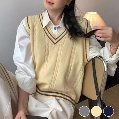 [엄지척]여자 3컬러 봄 가을 클래식 꽈배기 배색라인 니트조끼_19677767_667501