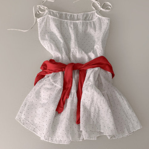 더핑크 / 리요 A라인 도트 레이어드 캉캉 끈 나시 미니 원피스