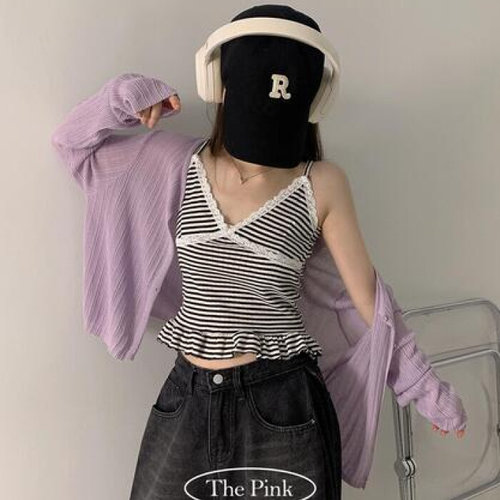 더핑크 / 미닛 브이넥 슬림 레이스 프릴 단가라 끈 나시