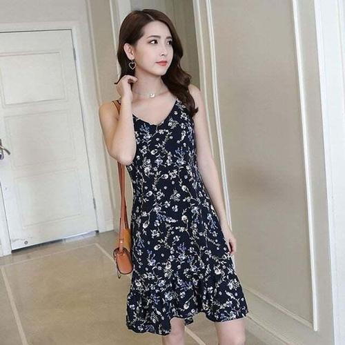 [셀럽하우스]끈 SQWQ5002 베이직 여성 나시 꽃무늬 올데이 패턴 네이비 원피
