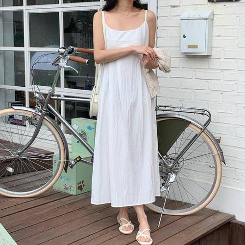 Kdragon여성 봄 여름 민소매 나시 원피스 롱 스커트