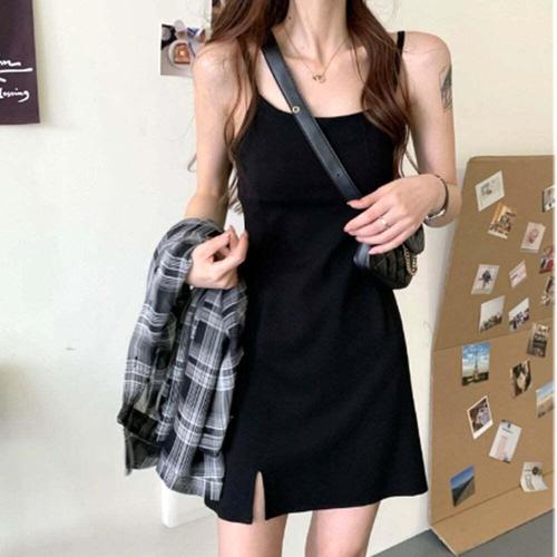 [셀럽하우스]홈웨어 BODT4843 편한 여성 끈나시 미니 원피스 체크 셔츠 세트