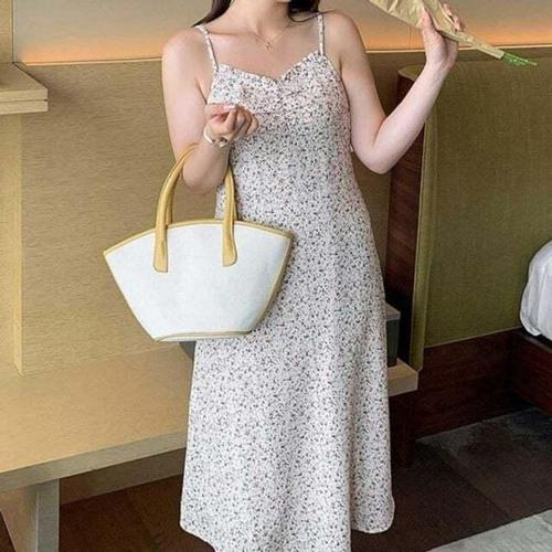 [셀럽하우스]플라워 VKZT5676 인기 여성 끈나시 롱원피스 감성 1P 여름 여행
