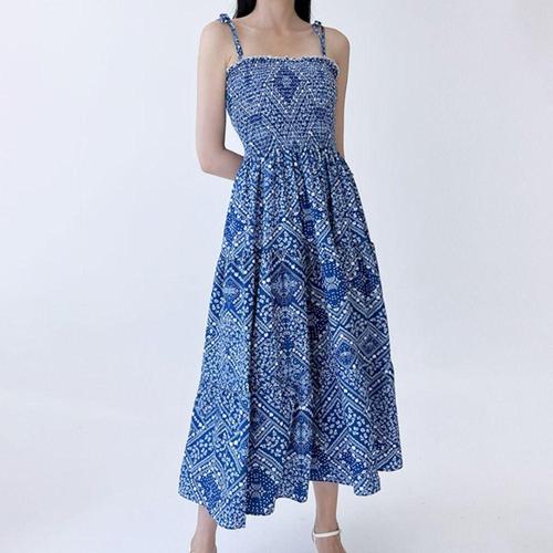 [셀럽하우스]여성 SITH8277 여름 끈나시 롱원피스 블루 1P 휴가룩
