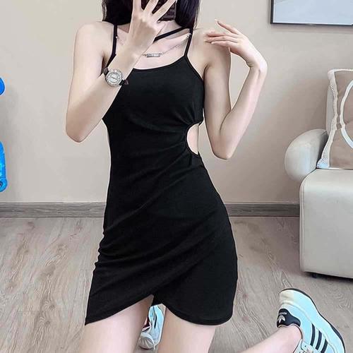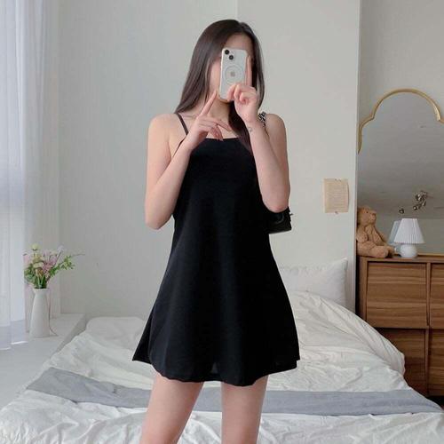 [셀럽하우스]나시 DFQY8321 끈원피스 레이어드 블랙 미니 드레스 스커트