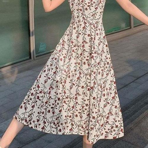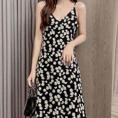 [셀럽하우스]여자원피스 LEQV2866 A라인 여성스커트 끈나시 플라워 데일리