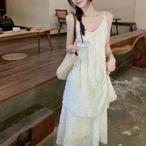 [셀럽하우스]여름 XXCJ6211 인기 캐주얼 레이어드 끈나시 감성 원치스 치마