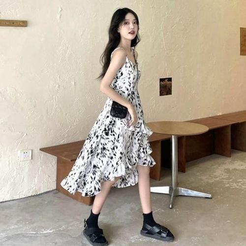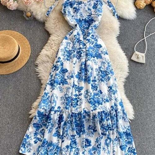 [셀럽하우스]롱원피스 VERX9582 캉캉 프린팅 치마 끈나시 ST020 원피스