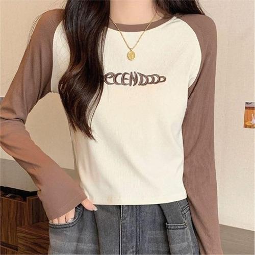 마켓피아 여성용 래글런 슬림핏 데일리 긴팔 티셔츠